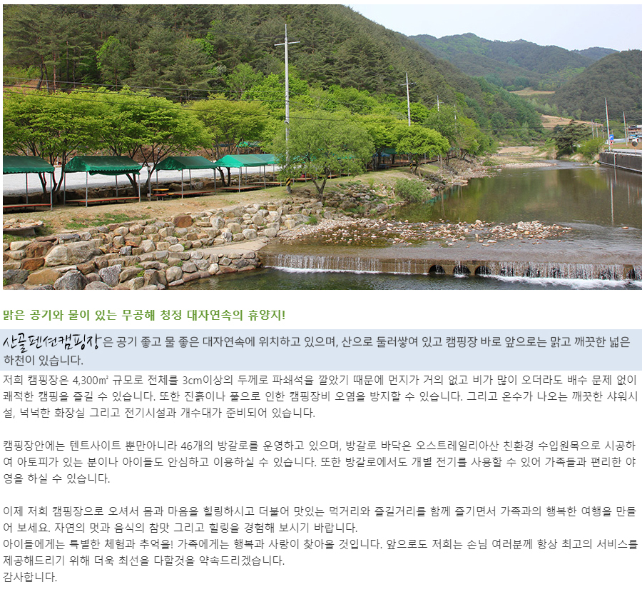 캠핑장소개 > 인사말